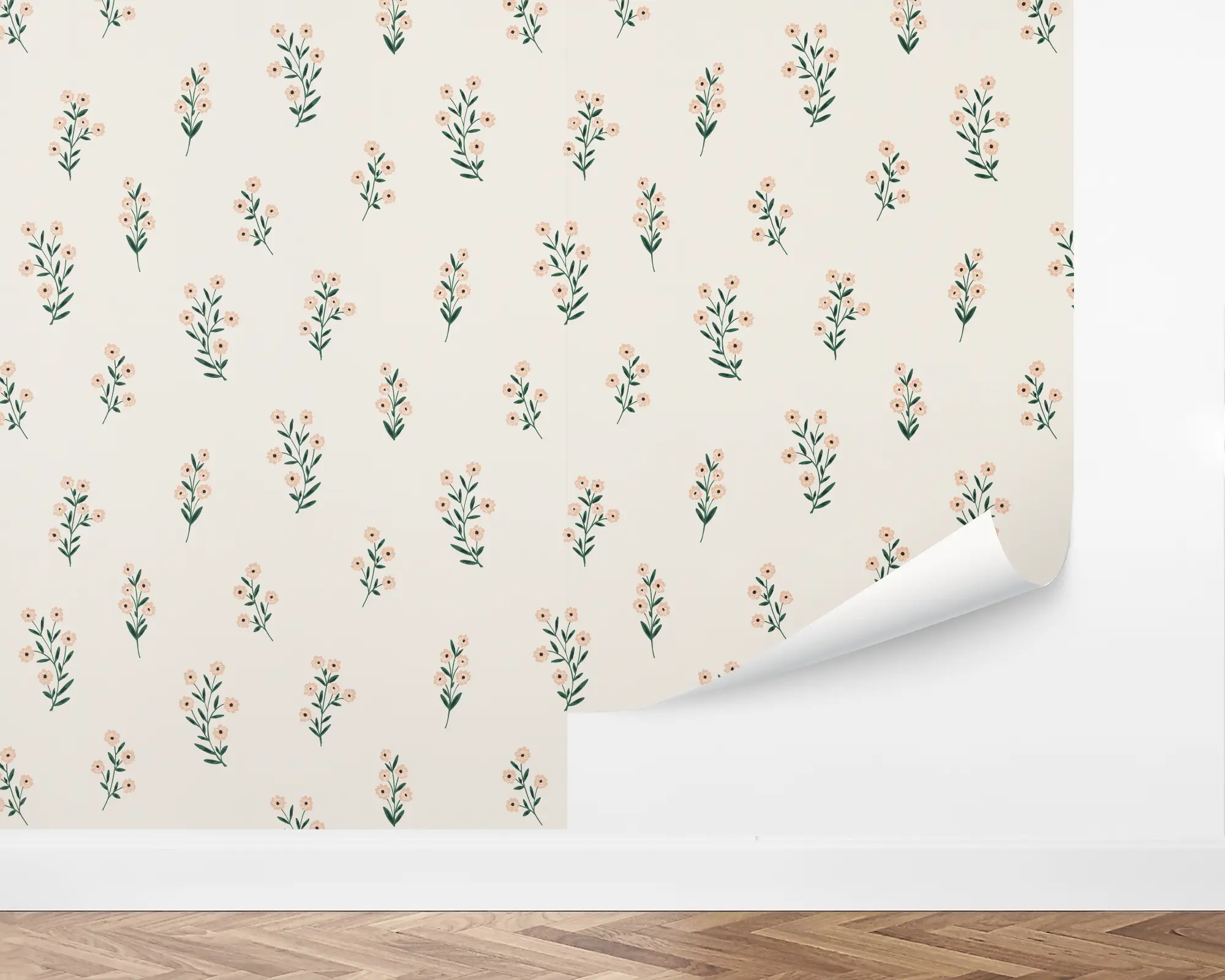 Transform your space with the illustrated flower bunches of our Dainty Flower Garden Peel and Stick Removable Wallpaper. Perfect for your child’s bedroom or nursery, this customizable wallpaper features bunches of Ambrosia pink flowers with hand drawn flair patterned across an Ivory background. Choose from hundreds of possible colors to personalize the wallpaper and create a one-of-a-kind pattern that perfectly suits your space!
