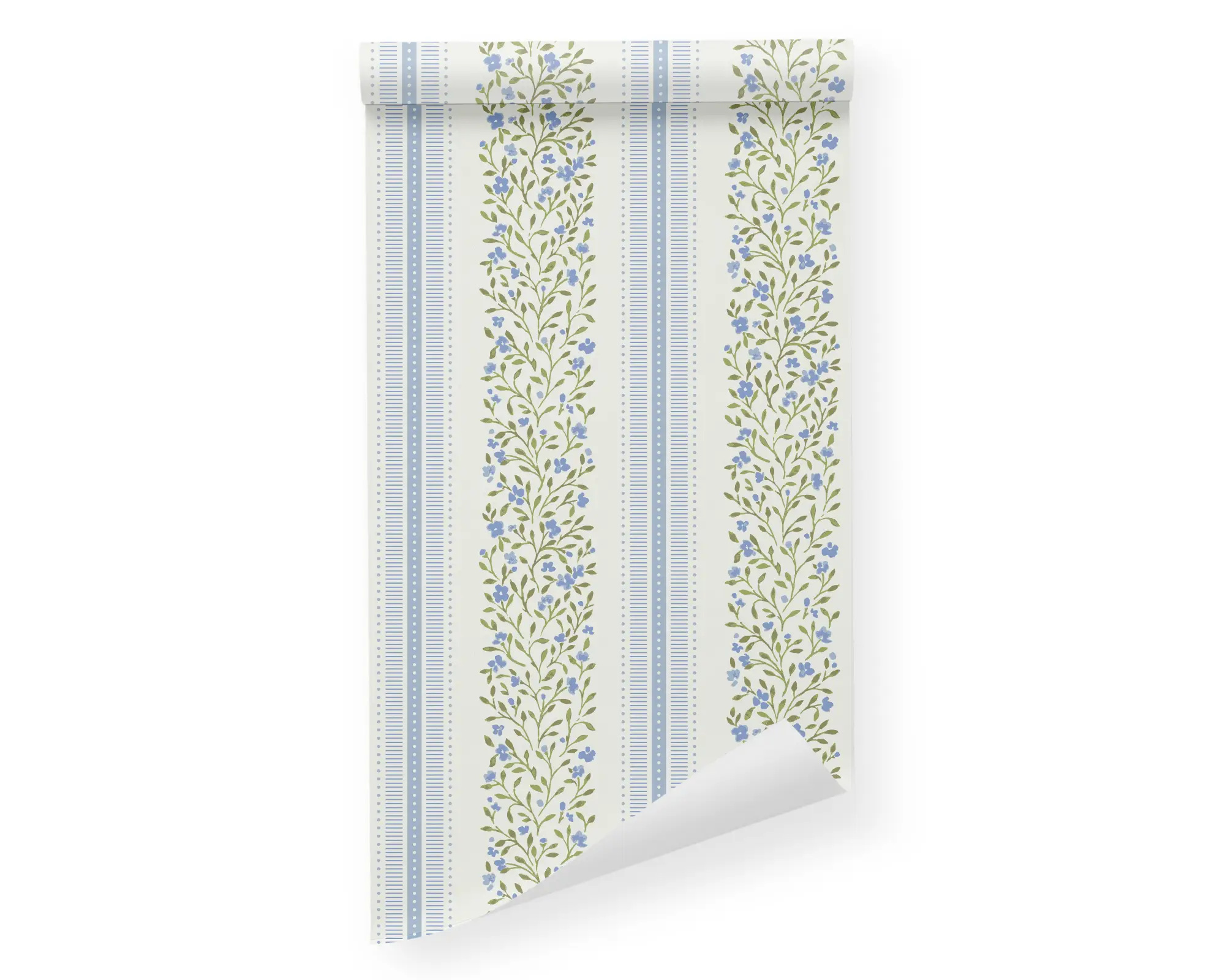 Create a rustic farmhouse statement on any wall in your home with our Ditsy Stripes Peel and Stick Wallpaper. Small cloud flowers sprout in rows in between stripes on top of a cotton background. Choose from your favorite color combinations to be perfect in any room!