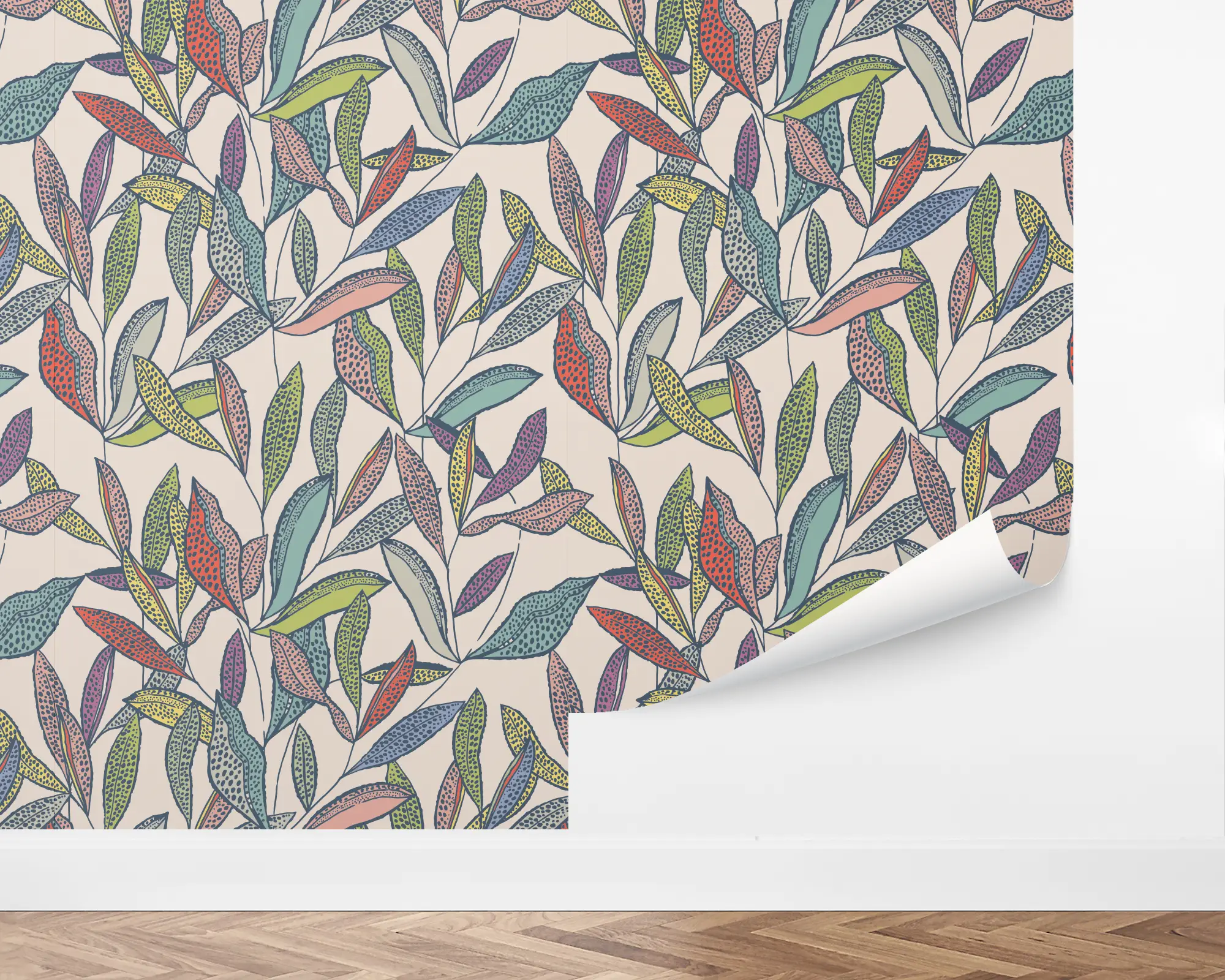 Add some bold energy to your life with our Foliage Fiesta Peel and Stick Wallpaper. This exciting design features outlined, multicolored leaves over a neutral background. Fully customizable with any of our beautiful colors, this wallpaper is the perfect way to liven up any space.