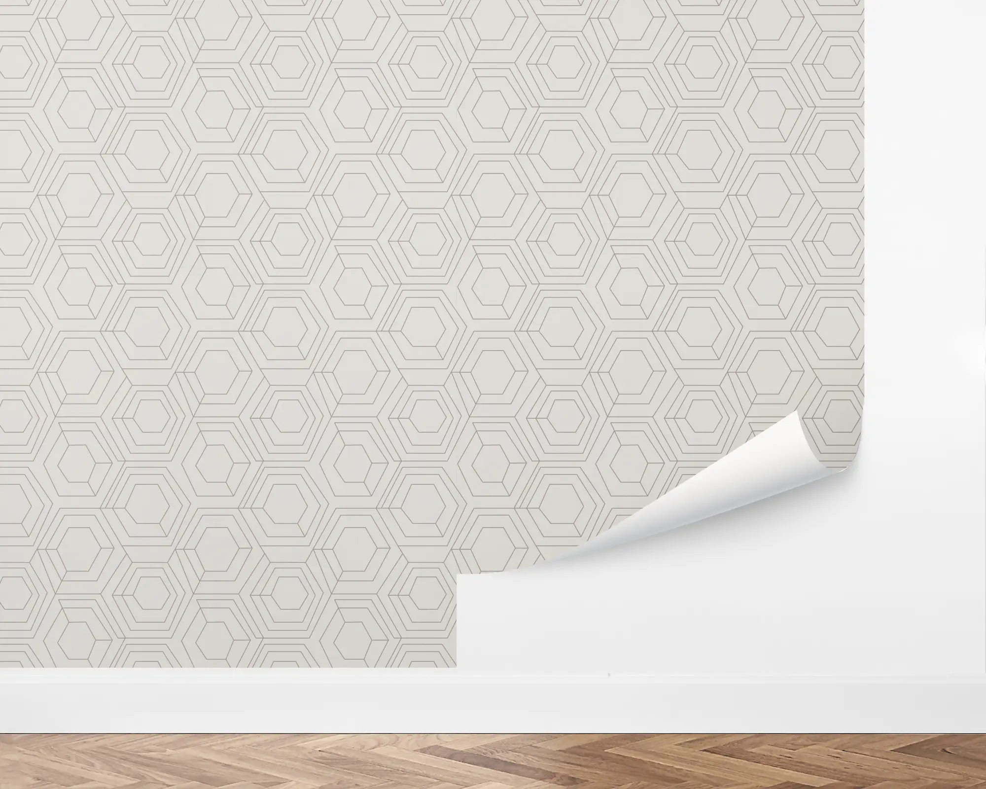 Our Hexagon Web Peel And Stick Removable Wallpaper brings an abstract accent anywhere in your home. Tawny geometric hexagons are freeform drawn on top of an egret background. Personalize with endless combinations of colors to match your interior style perfectly!
