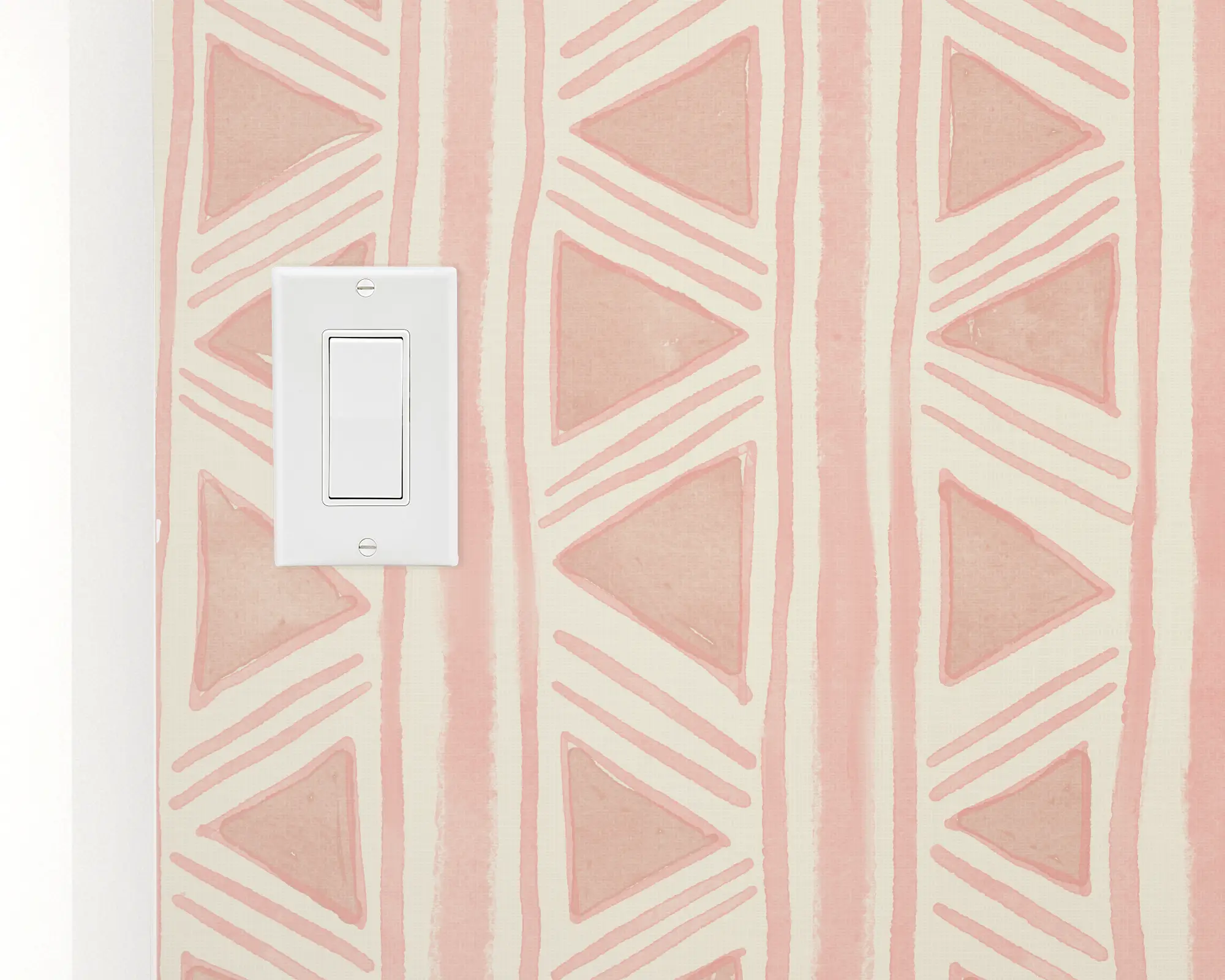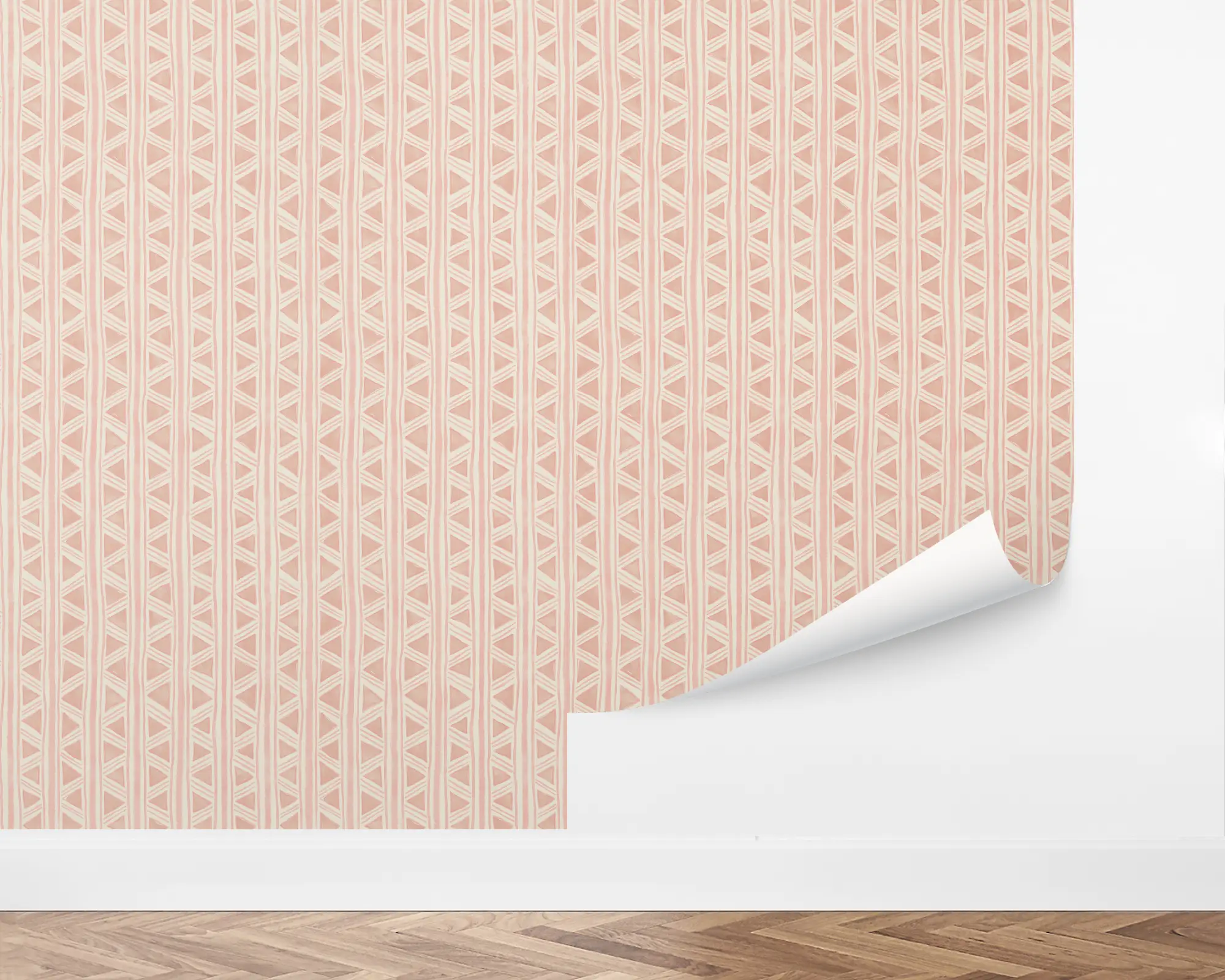 Add a boho accent wall to any room in your home with our Irregular Triangles Peel And Stick Removable Wallpaper. Watercolor pretty stripes and glow triangles are painted on top of a light background. Choose from endless color combinations to match your interior style perfectly!