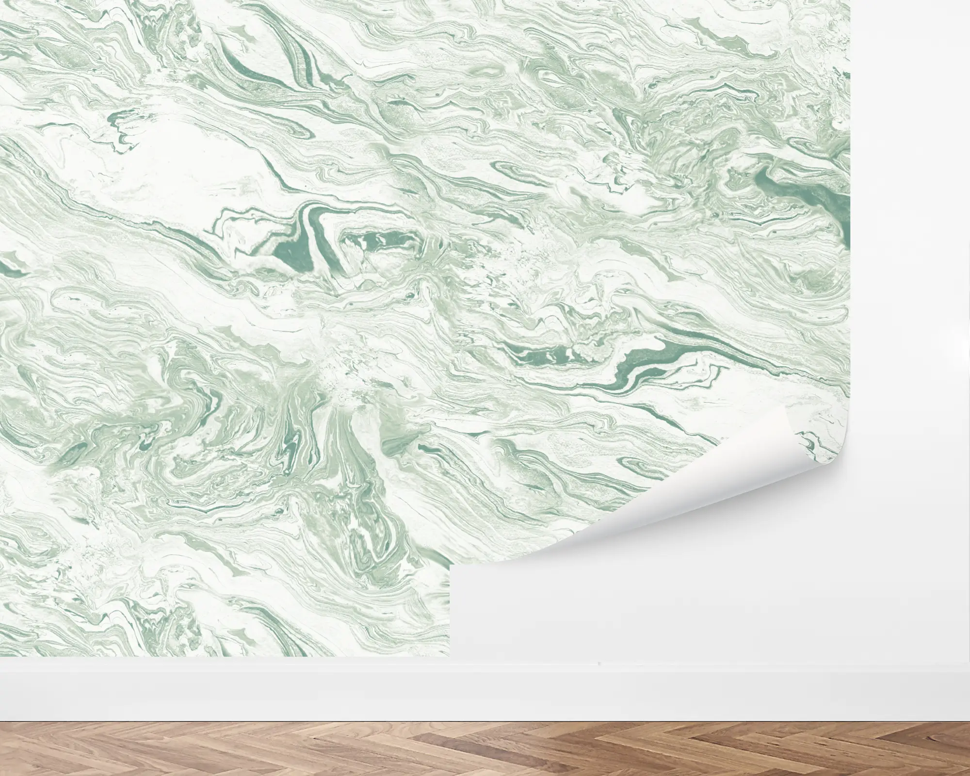 Add a chic flair to any wall with the realistic textures of our Marble Dream Peel and Stick Removable Wallpaper. The marble texture, swirling over this customizable wallpaper in shades of green, is perfect as an accent wall to liven up your room. Choose from hundreds of possible colors to personalize the wallpaper and create a one-of-a-kind pattern to fit your individual style!