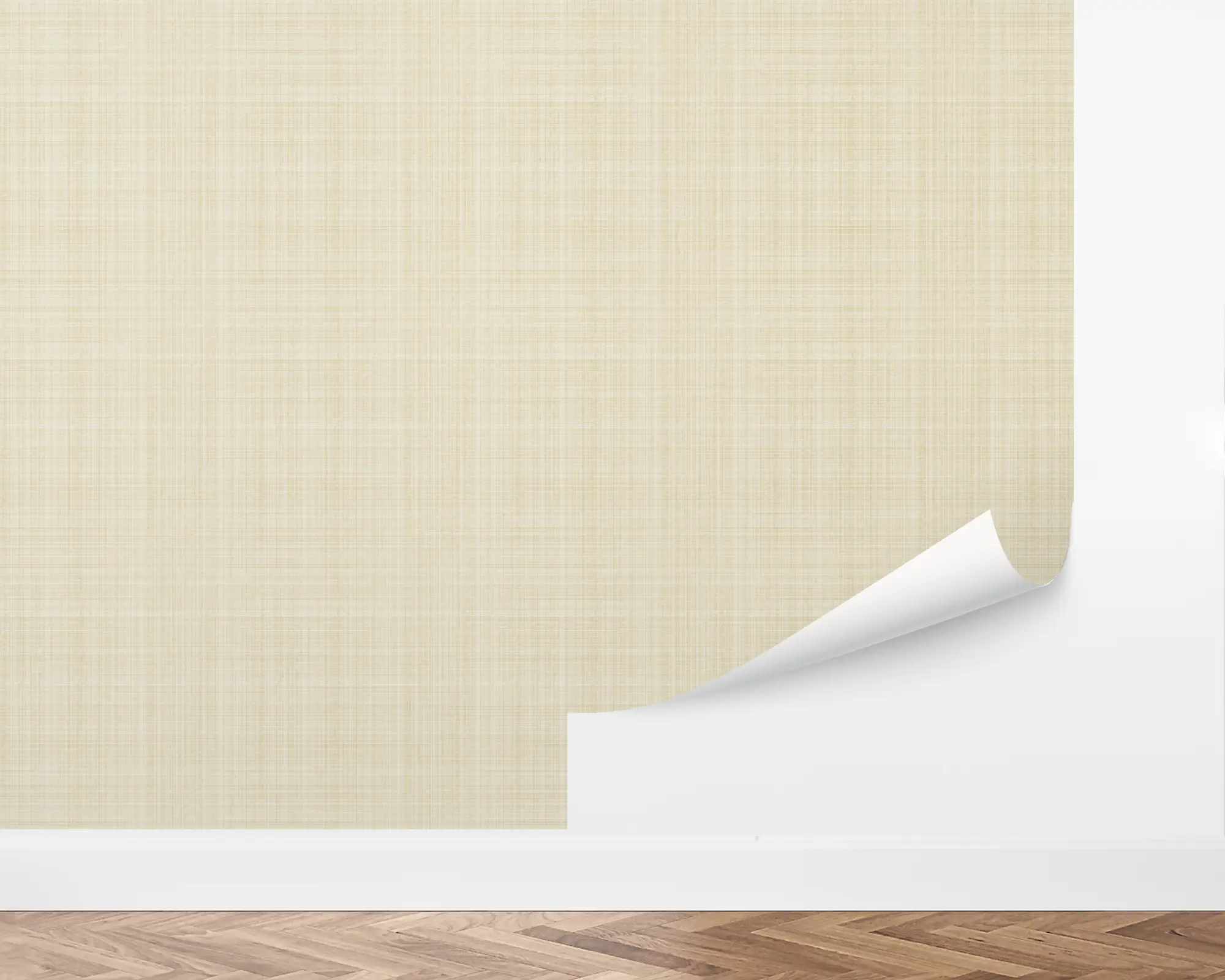 Natural Juta wallpaper features a soft woven texture in warm beige and cream, perfectly mimicking the look of natural jute grasscloth for a refined, organic finish. This versatile, minimalist wallpaper is ideal for entryways, living rooms, bedrooms, or offices, adding subtle texture and warmth to any modern or transitional space. Enjoy an easy, peel and stick application with fully customizable color options to create your dream neutral interior.