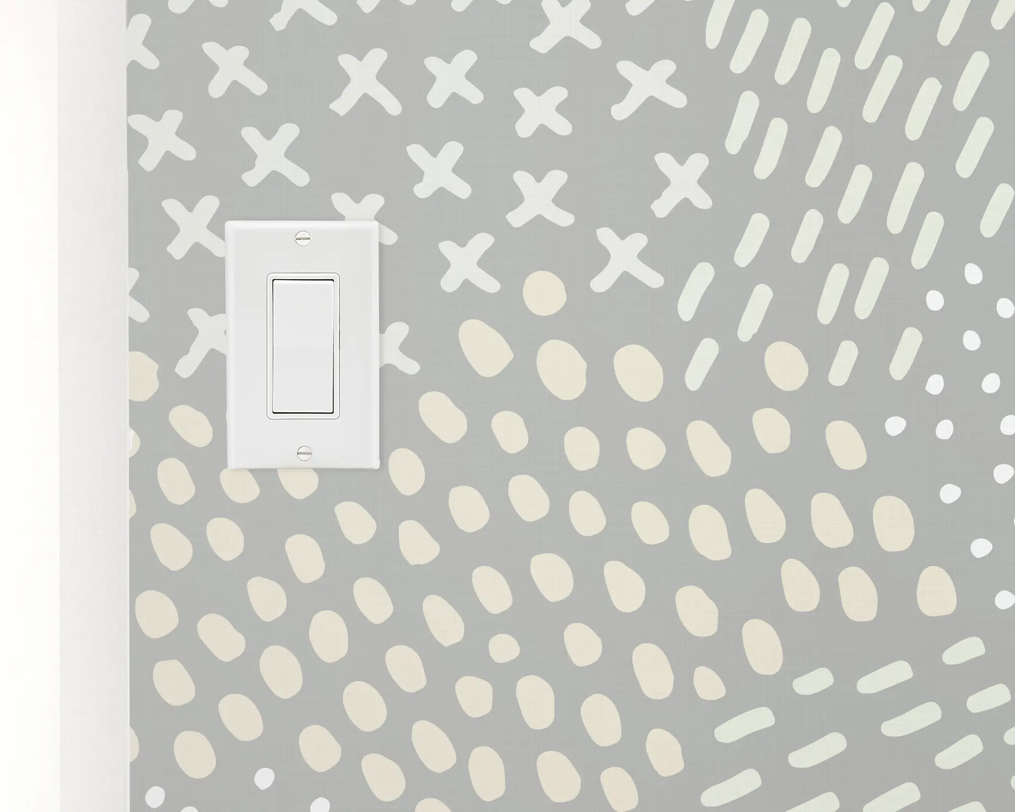 Give your space a little something extra with our Organic Terrain Peel and Stick Wallpaper. This subtle yet abstract design features neutral clusters of dots, dashes, and crosses over a light grey background. Fully customizable with any of our gorgeous colors and fonts, this design is perfect for any modern theme.
