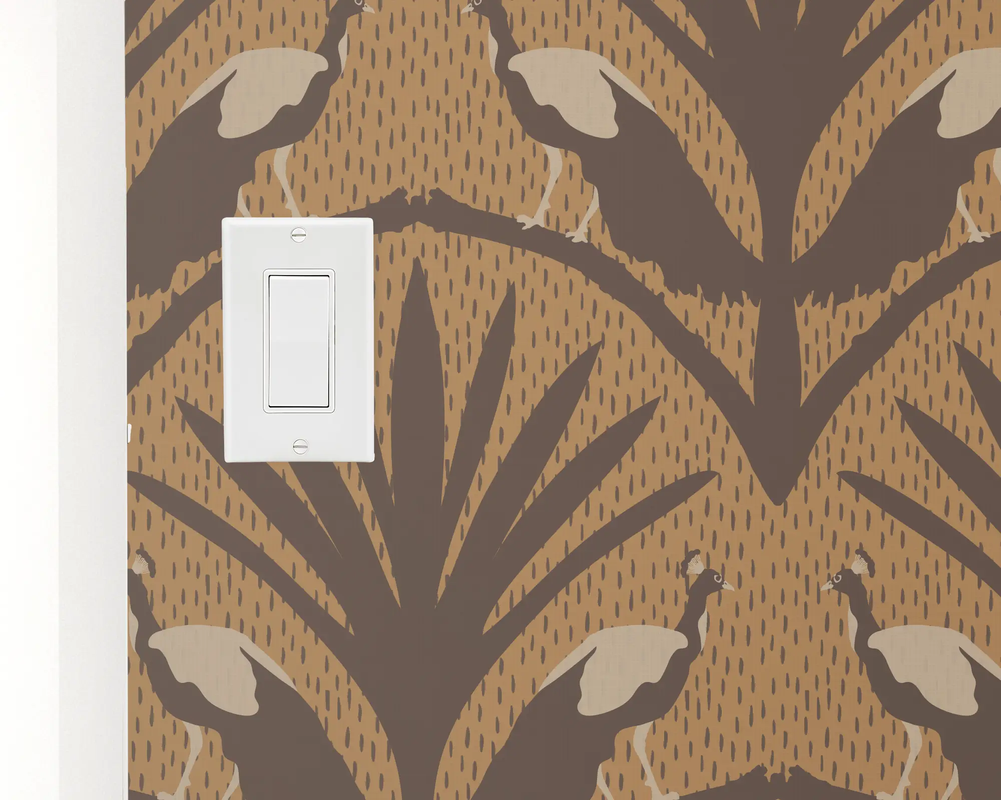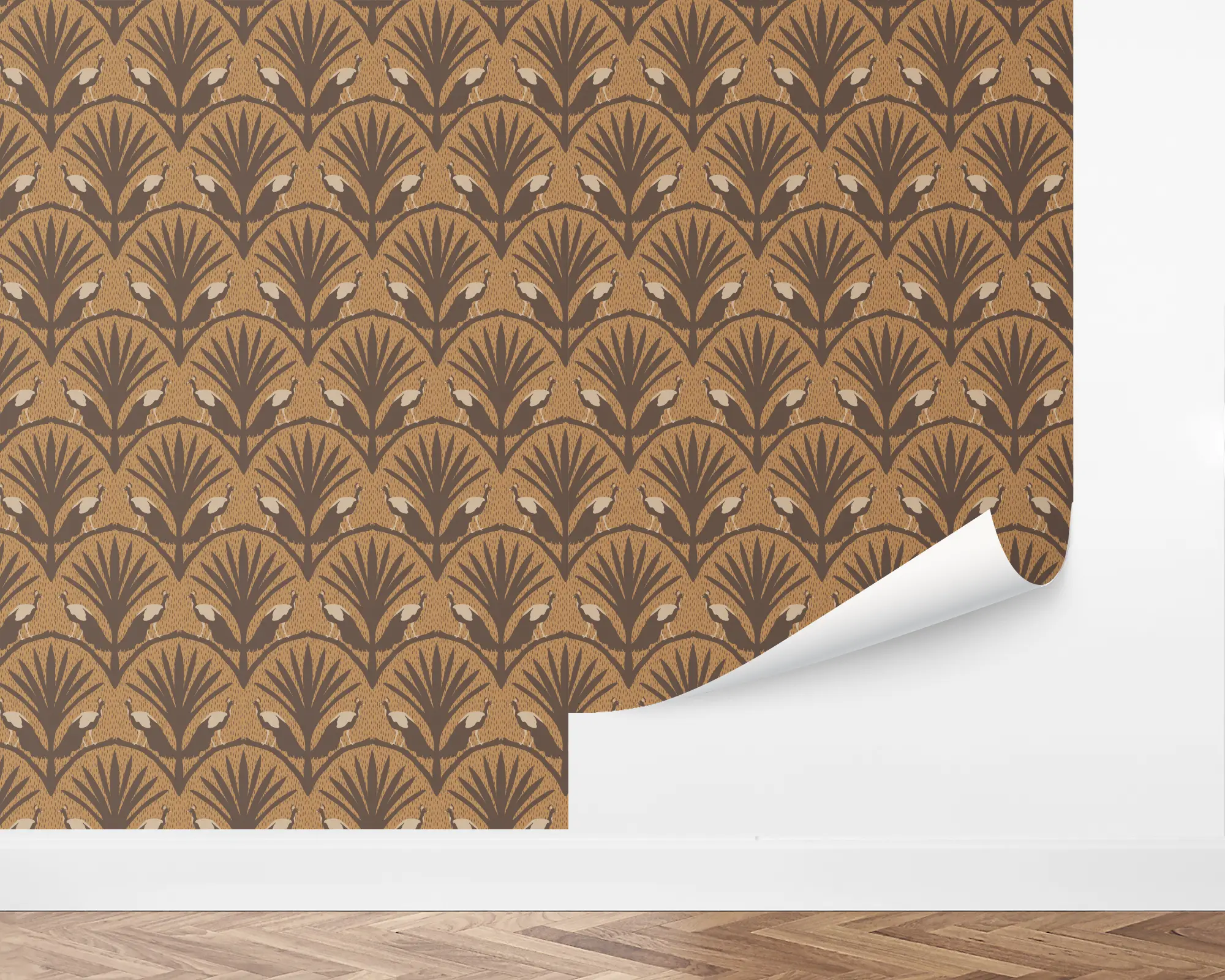 Transform your space with our Peacock Scallop Peel and Stick Removable Wallpaper. This beautiful, deco-inspired design features elegant peacocks and arching palms in a vintage bronze color palette. Customizable with any of our stunning colors and versatile paper types, this wallpaper is perfect for any room that needs a touch of eclectic class.