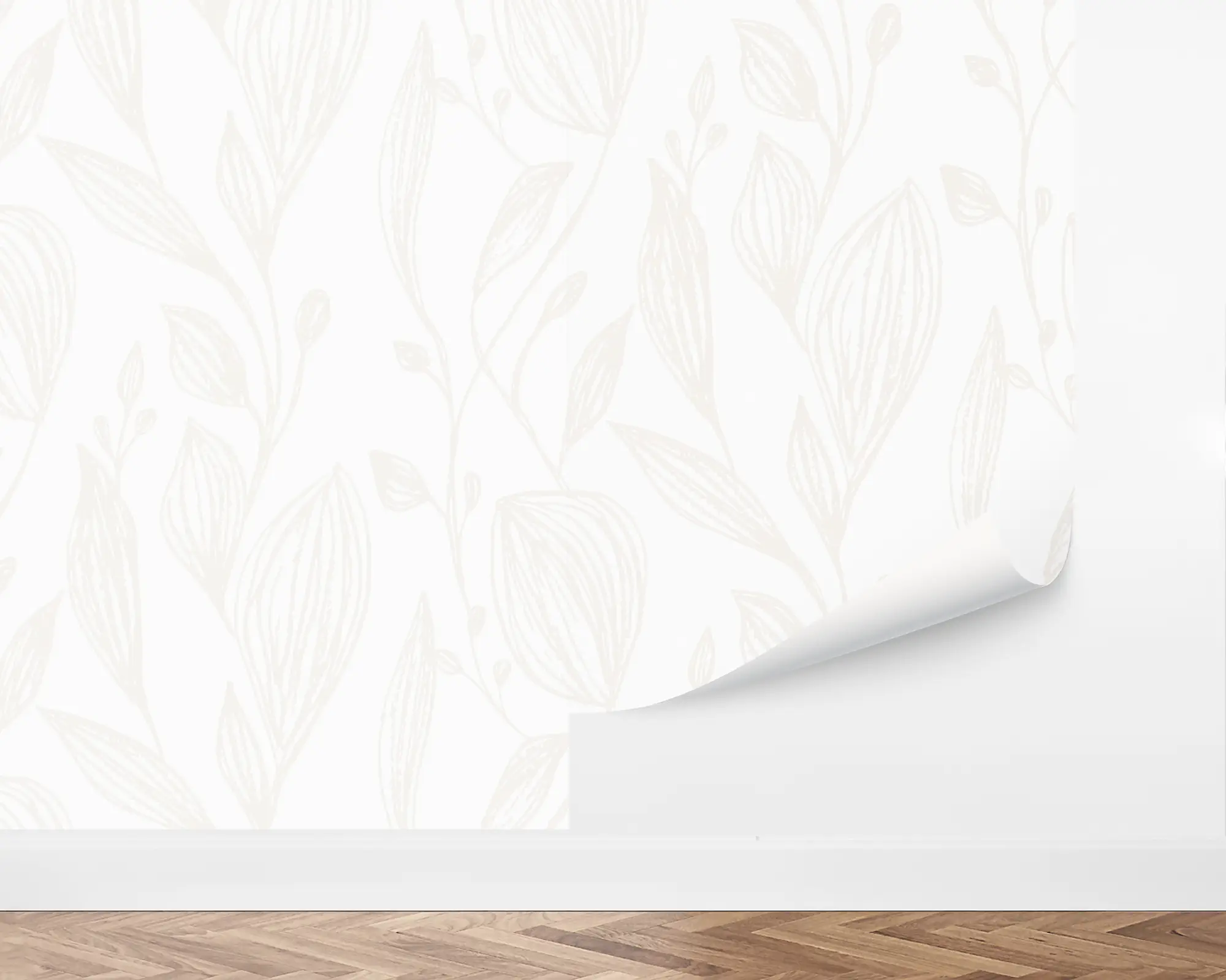 Add a neutral accent to any wall in the interior of your home with our Penciled Leaves Peel And Stick Removable Wallpaper. Neutral cream illustrated foliage grows atop a white background. Choose from our amazing array of colors to coordinate with your interior perfectly and showcase your personal style!
