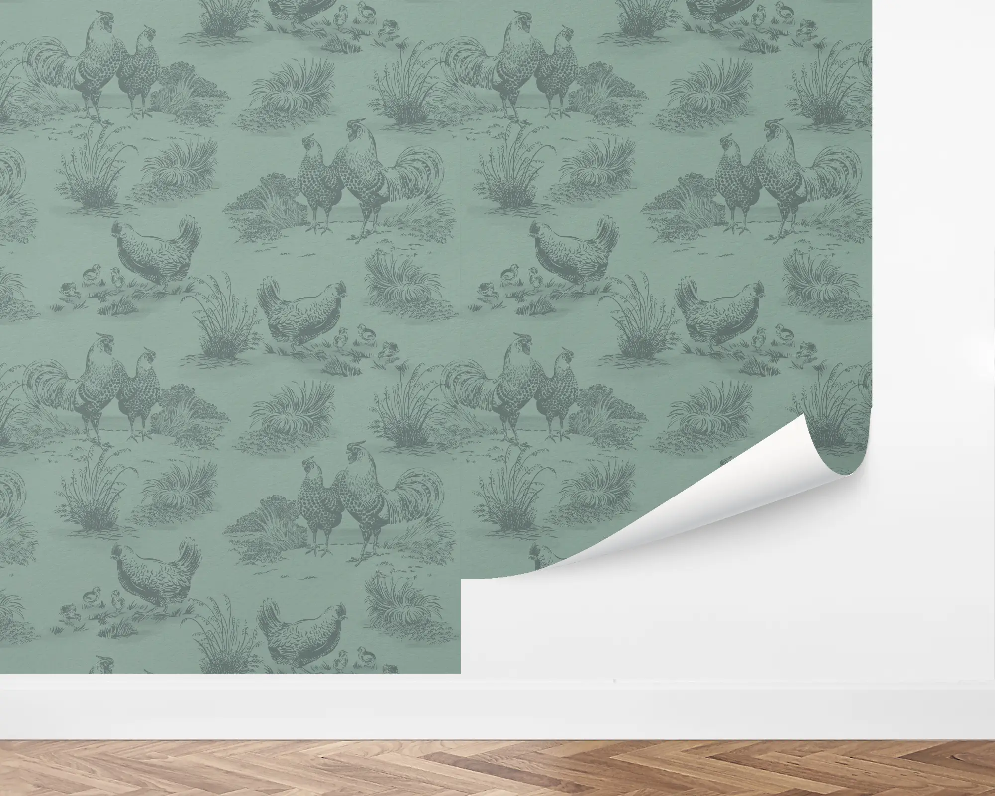 Our Rustic Roost Peel and Stick Removable Wallpaper adds a charming rural feel to any wall in your home. Thunder illustrations of roosters and hens are placed around a textured acadia background. Personalize with your favorite combinations of colors to match your interior style perfectly!
