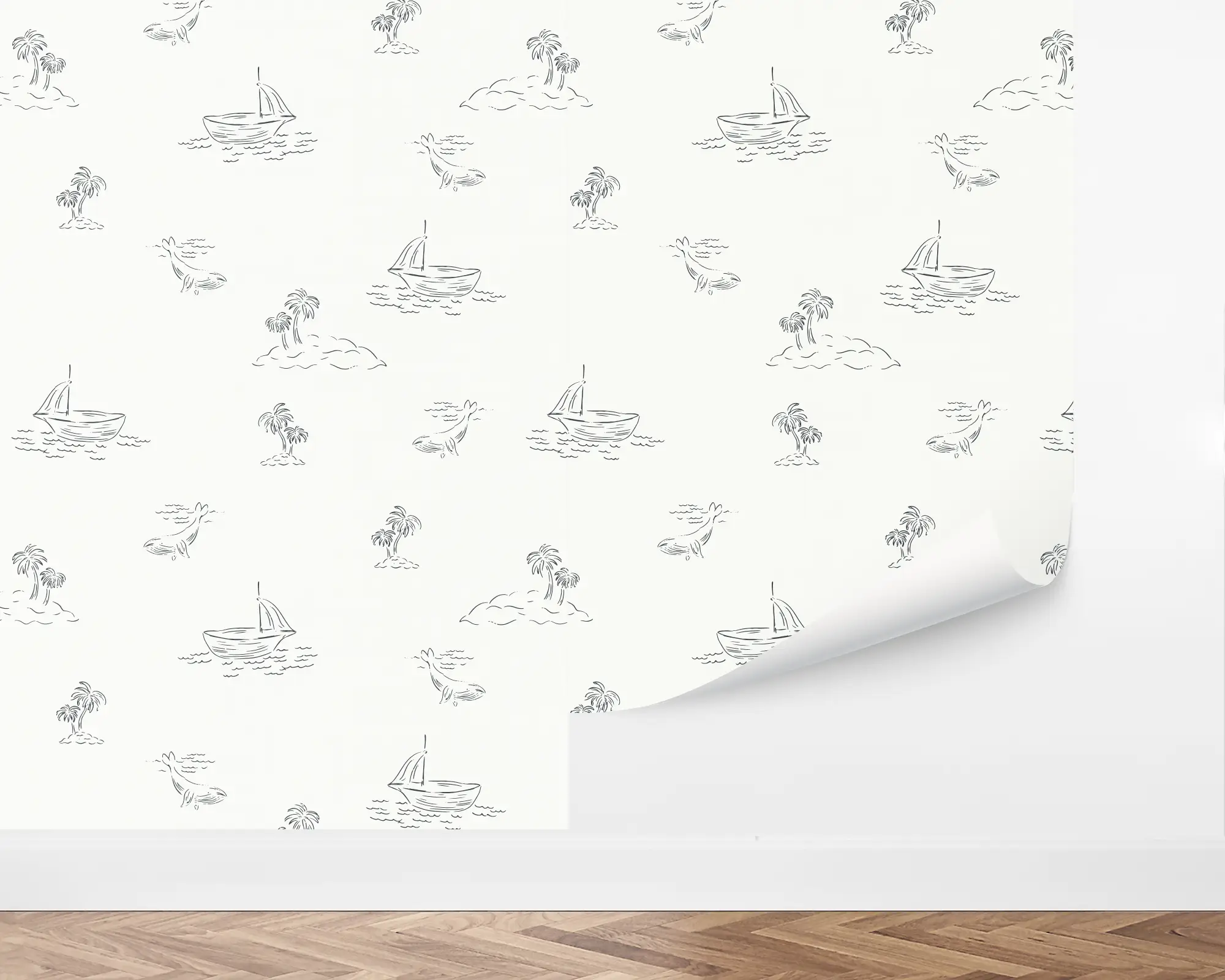 Bring a sense of adventure into your home with our Sea Travel Peel and Stick Removable Wallpaper. This simple yet charming design features tiny scenes of sailboats, whales, and islands. Fully customizable with any of our beautiful colors, this wallpaper is perfect for any kid's space.