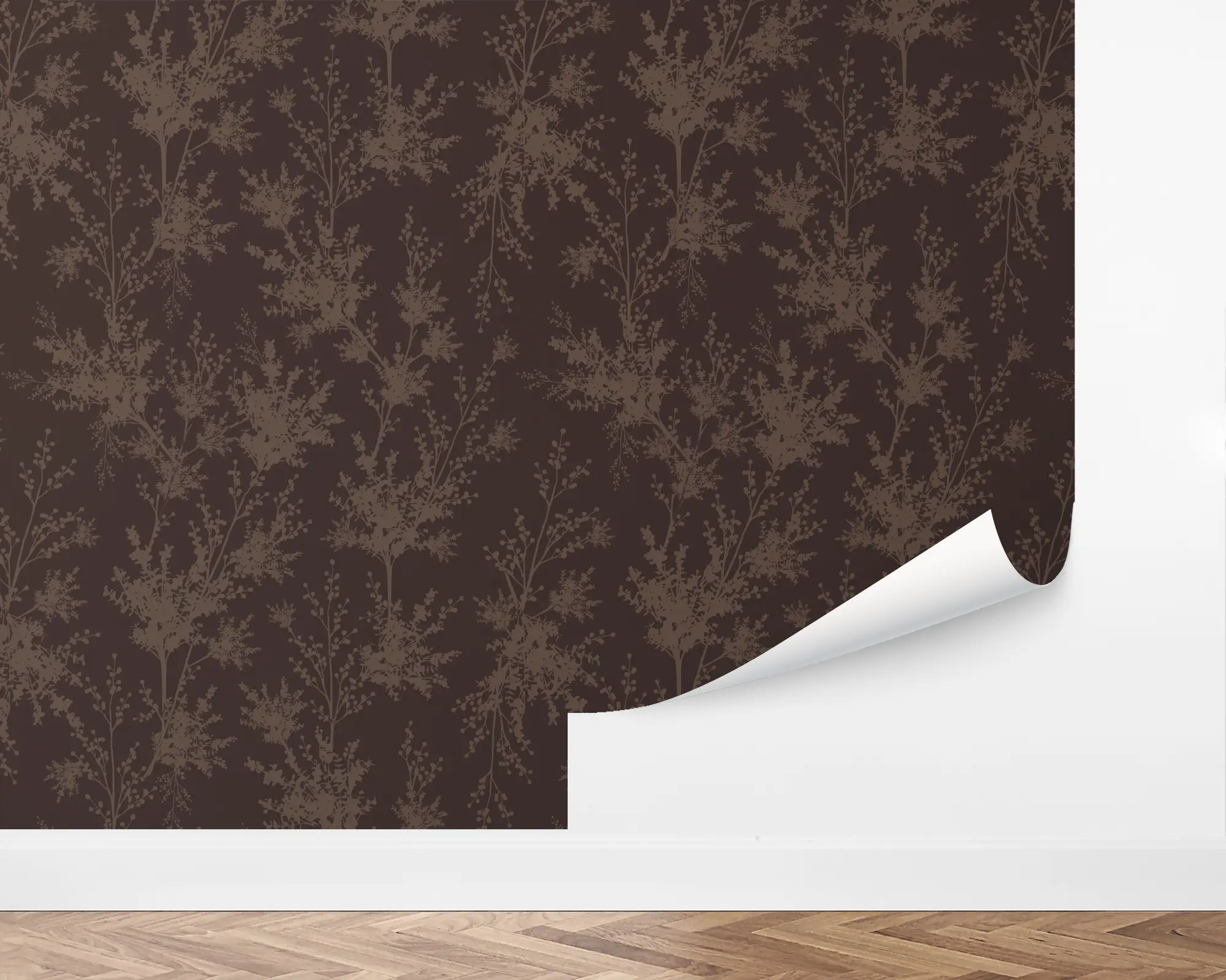 Our Silhouette Forest Peel And Stick Removable Wallpaper is sure to transform any room in your home into a moody forest. Carob illustrations of shadowed branches are placed all around an espresso background. Customize with endless combinations of colors to match your interior style perfectly!