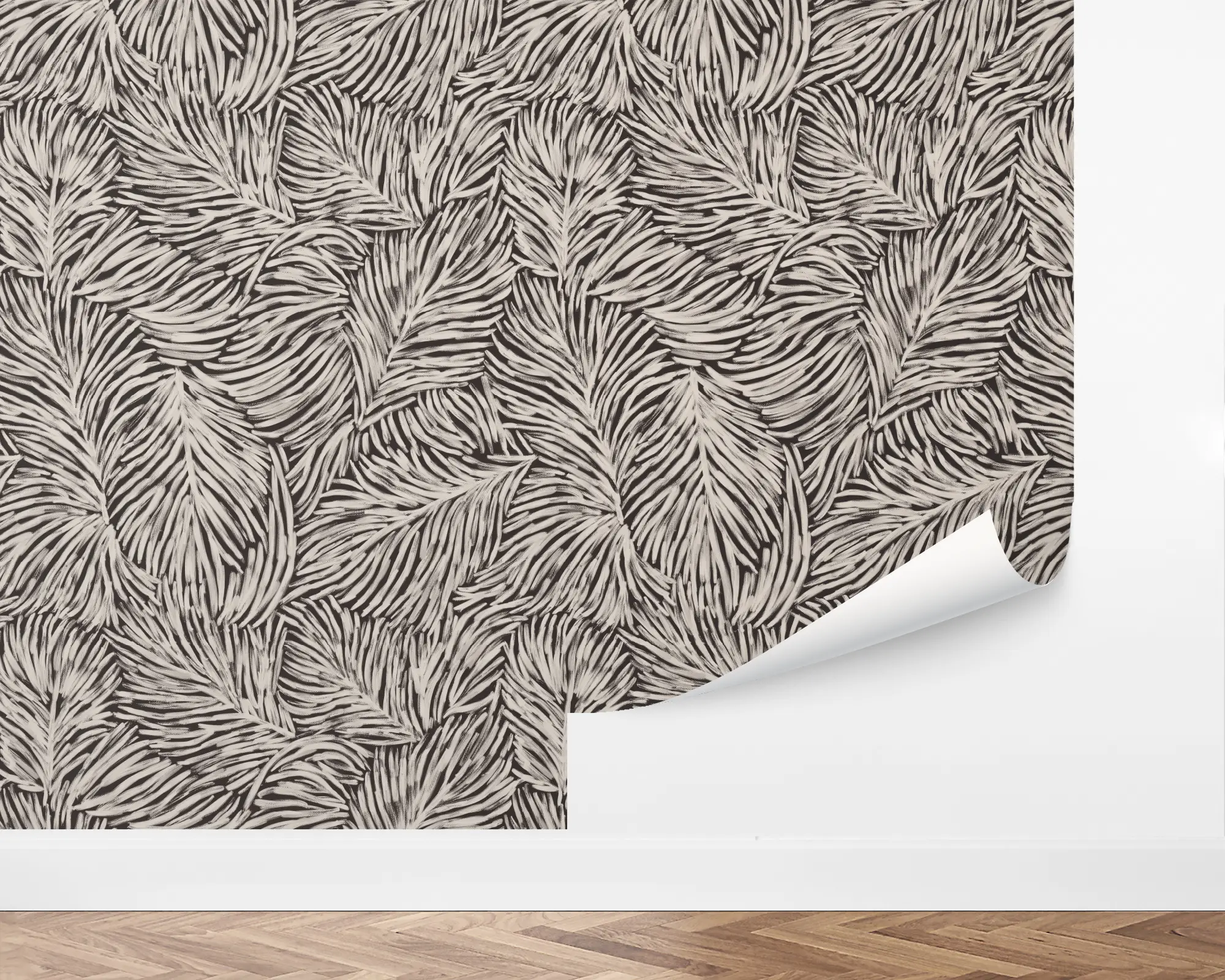 Bring the vibe of the coast to any wall in your home with our Tropical Night Peel and Stick Wallpaper. Shell brushstrokes form lush palm fronds against an espresso background. Personalize with limitless color combinations to match your interior style perfectly!