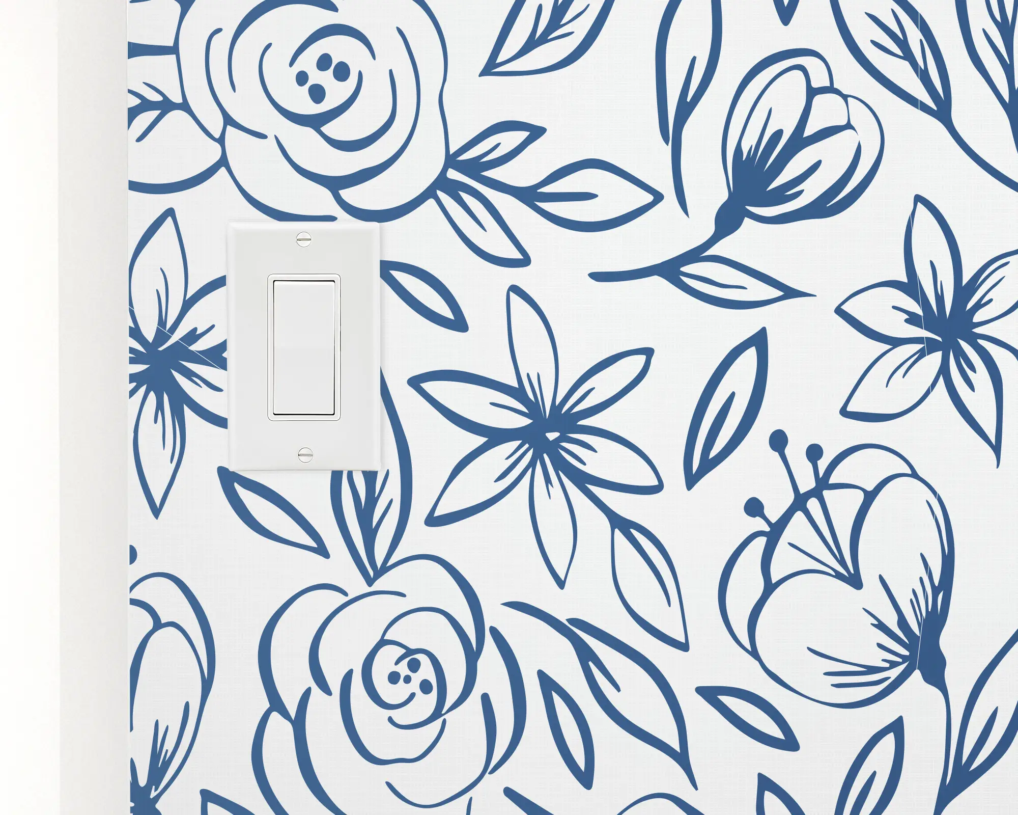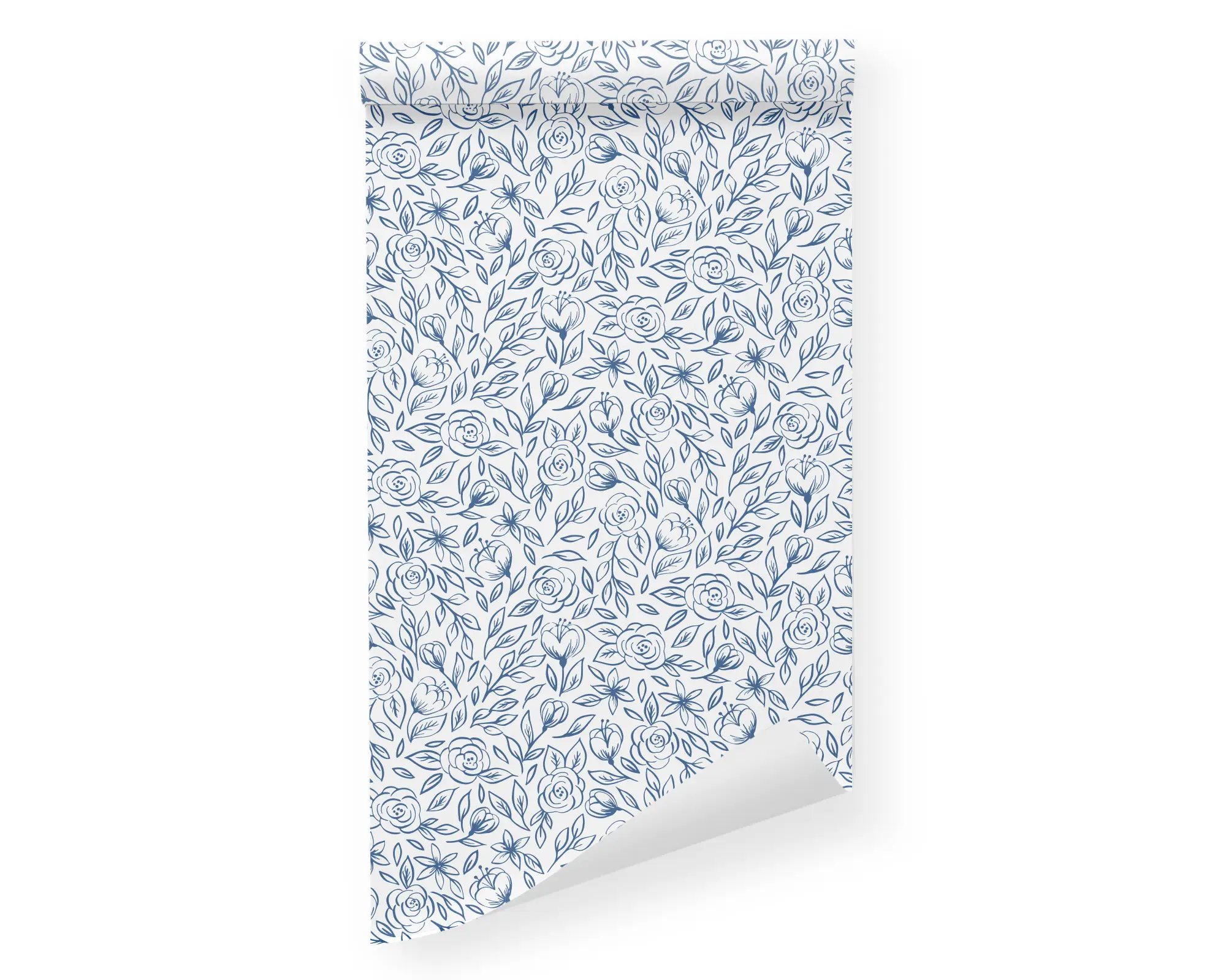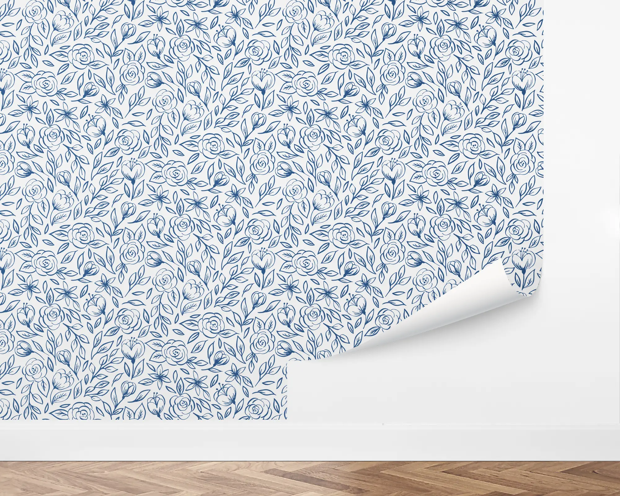 Transform any room in your home into a flourishing garden with our Wild Roses Peel And Stick Removable Wallpaper. Blue illustrations of florals sprout along the white background. With endless color combinations to customize with, this is sure to be an eye-catching design on any wall!